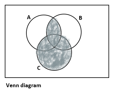 - [c]In the given Venn diagram shaded region is $C \cup(C \cap A) \cup(C \cap B) \cup (A \cap B) $