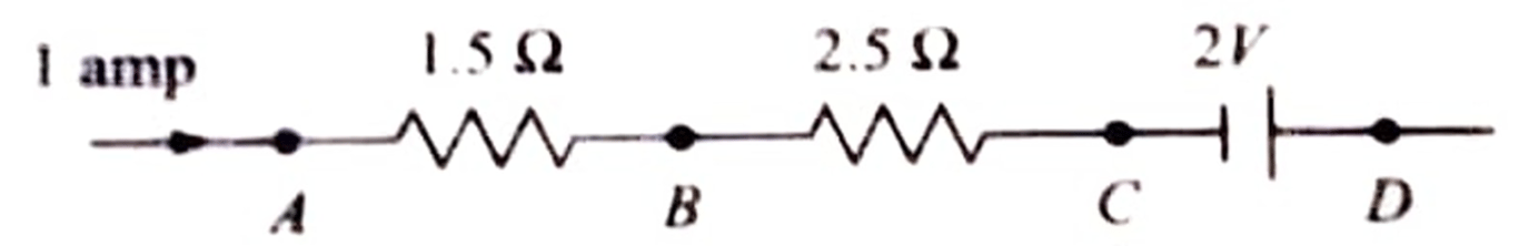 $ \Rightarrow V _{A}-0=1.5V\Rightarrow V _{A}=1.5V $ Potential difference between B and C $ V _{B}-V _{C}=1\times 2.5=2.5V $