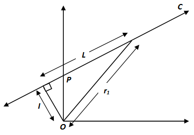- [b] The angular momentum of a body of constant mass and constant velocity depends upon the perpendicular distance from a fixed point (origin).