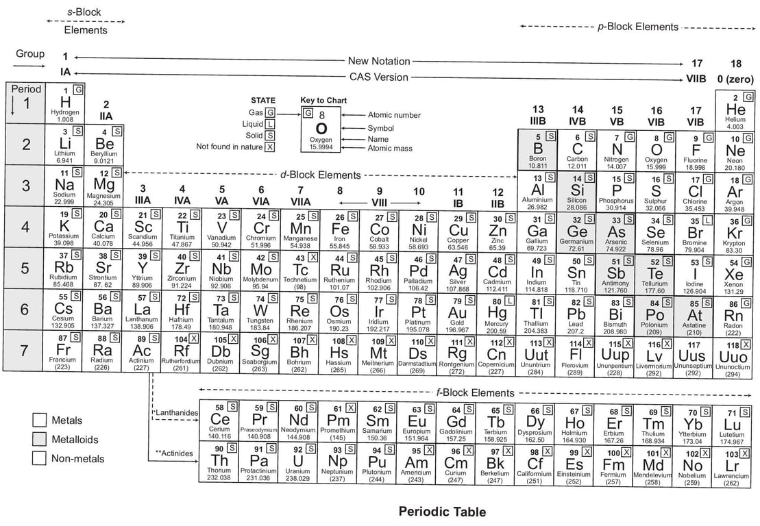 - Mendeleev’s Periodic Table: Arranged the elements by atomic mass, with gaps for undiscovered elements.