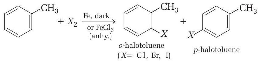 - Example: Chlorination of benzene in presence of FeCl₃.