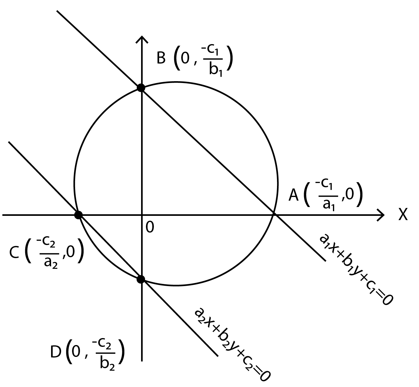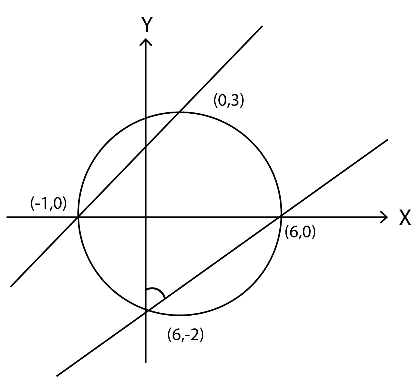 - Calculate the intersection point of the given lines. This point lies on the circle.
