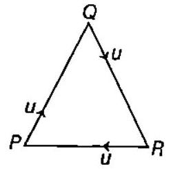 ##### Three particles $P, Q$ and $R$ are situated at corners of an equilateral triangle of side length (d). At $t=0$, they started to move such that $P$ is moving towards $Q, Q$ is moving towards $R$ and $R$ is moving towards $P$ at every instant. After how much time (in second) will they meet each other?