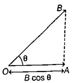 $$ \vec{A} \cdot \vec{B} = |\vec{A}| |\vec{B}| \cos \theta $$ where θ is the angle between the vectors.