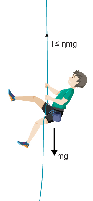##### A man slides down a light rope, whose breaking strength is $\eta$ times his weight. What should be his maximum acceleration, so that the rope does not break?