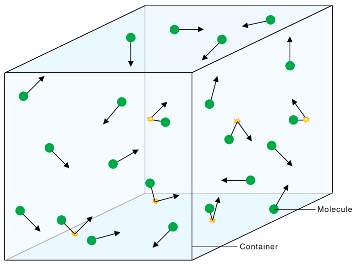 - 4. The collisions between molecules and the walls of the container are perfectly elastic.