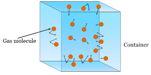 - Gases are composed of a large number of small particles (molecules or atoms) in constant random motion.