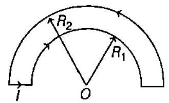 1. [x] $\dfrac{\mu _{0} I}{4}\left(\dfrac{1}{R _{1}}-\dfrac{1}{R _{2}}\right)$