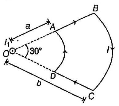 4. [ ] $\dfrac{\mu _{0} I}{4 \pi}\left[2(b-a)+\dfrac{\pi}{3}(a+b)\right]$