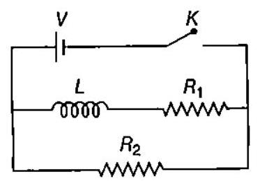 3. [ ] $\dfrac{V}{R _{2}}$ at $t=0$ and $\dfrac{V R _{1} R _{2}}{\sqrt{R _{1}^{2}+R _{2}^{2}}}$ at $t=\infty$