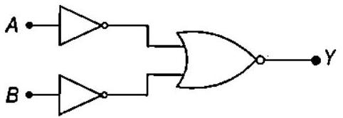 ##### The following truth table is for | $\boldsymbol{A}$ | $\boldsymbol{B}$ | $\boldsymbol{Y}$ | | :---: | :---: | :---: | | 1 | 1 | 0 | | 1 | 0 | 1 | | 0 | 1 | 1 | | 0 | 0 | 1 |