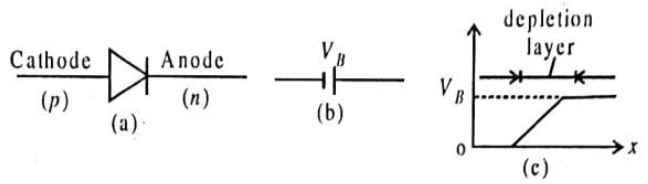 In figure (a) the triangle shows the direction of current. For $Si$ diode the value of $V_B$ is $0.7 V$ and for Ge diode the value of $V_B$ is $0.3 V$.
