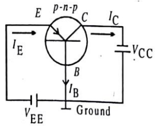 In proper biasing of transistor the input (i.e., base emitter junction) is always forward biased and output (i.e., collector base junction) is always reverse biased as shown in figure. [This scheme of biasing is same for all three transistor configurations; common base configuration (C.B), common emitter configuration (C.B) and common collector configuration (C.C)]