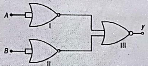 Answer: $y=\overline{\overrightarrow{A}+\overrightarrow{B}}=\overline {\overline{A}}\cdot \overline {\overline{B}}=A \cdot B$