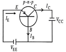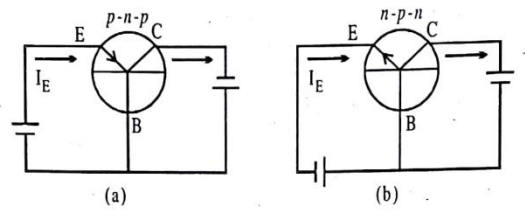 (c) the emitter injects holes into the base of the $p-n-p$ and electrons into the base region $n-p-n$