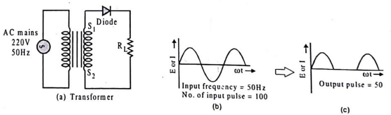 Junction diode ( $p-n$ junction) can be used to convert the alternating current (a.c.) into direct current (d.c.). The process of conversion from a.c. to d.c. is known as rectification and the device is called rectifier. A $p-n$ junction can be used as a helf wave or full wave rectifier.