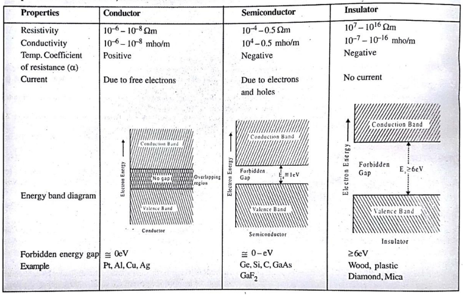 A semiconductor, has a completely filled valence band i.e., it resembles an insulator at zero temperature. However, the gap between this filled valence band and next band (C.B) is small, about $1 eV$ or less [shown in figure 10.3 (b)]. Hence, electrons can easily make the transitions from one band to another at room temperature and then carry an electric current (Silicon, Germanium are semiconductors). There are two types of semiconductor.