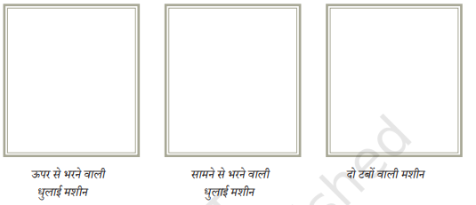 बाज़ार में उपलब्ध विभिन्न प्रकार की धुलाई मशीनों का सर्वेक्षण कीजिए। इनके चित्र भी इकट्ठा करिए और उन्हें दिए गए बॉक्सों में चिपकाइए।