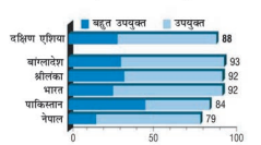 देश70.7 81.1 75 10,199 32.7 164.5 - - दक्षिण एशिया 69.3 68.7 71 6,485 37.8 206.3 - - बांग्लादेश 72.8 72.8 69 3,524 28.2 221.0 14.8 136 भारत 68.8 69.3 75 6,427 34.6 211.0 21.2 130 नेपाल 70.6 59.6 71 2,433 28.4 154.0 15.0 149 पाकिस्तान 66.6 57.0 46 5,035 64.2 268.0 6.1 150 श्रीलंका 75.5 91.2 98 11,669 8.0 65.0 - 76
