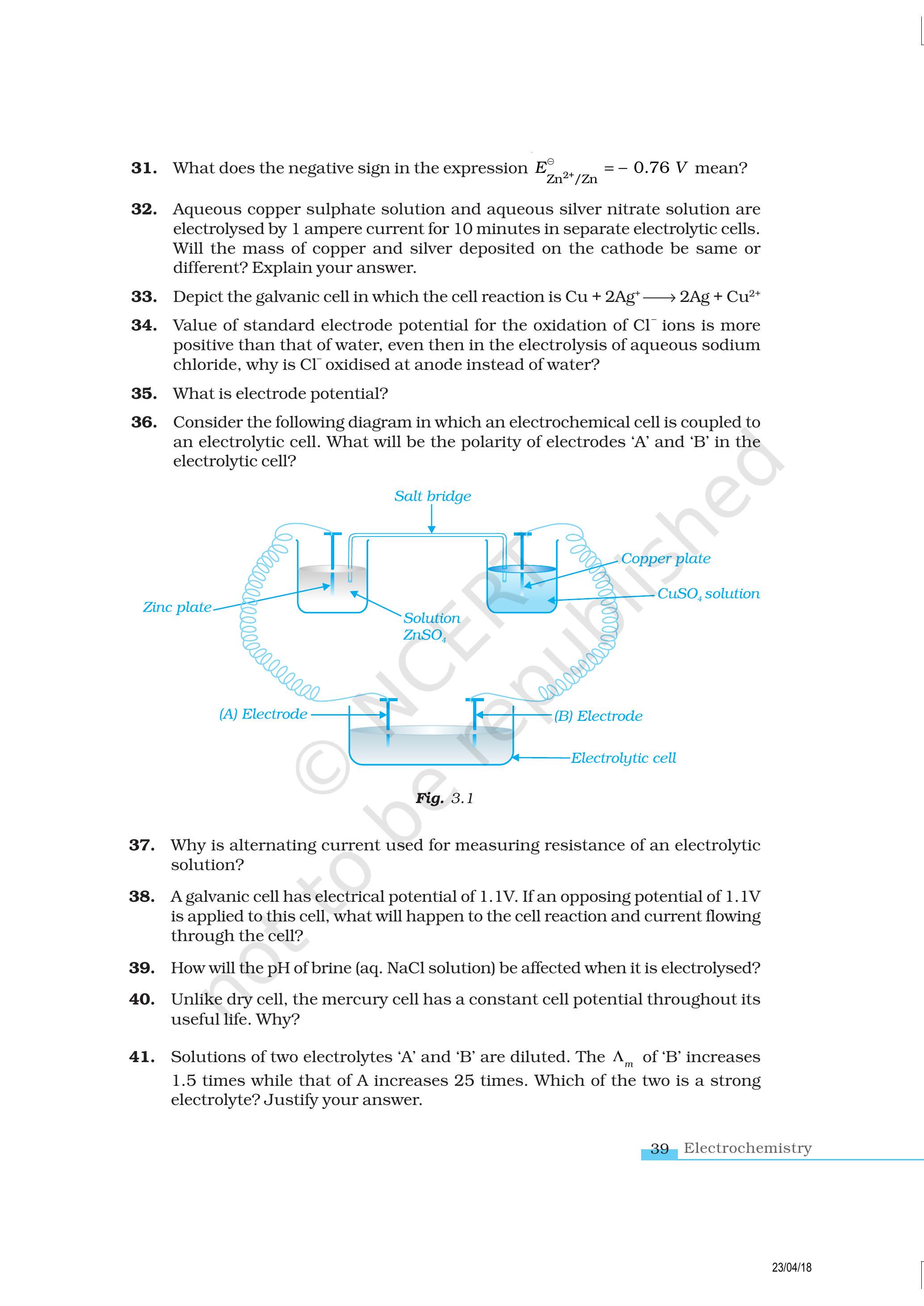 ~~ ३९. संयंत्रित कोशिका में $NaOH$ बनते ही द्रव्यमान संतुलन बढ़ जाएगा।
