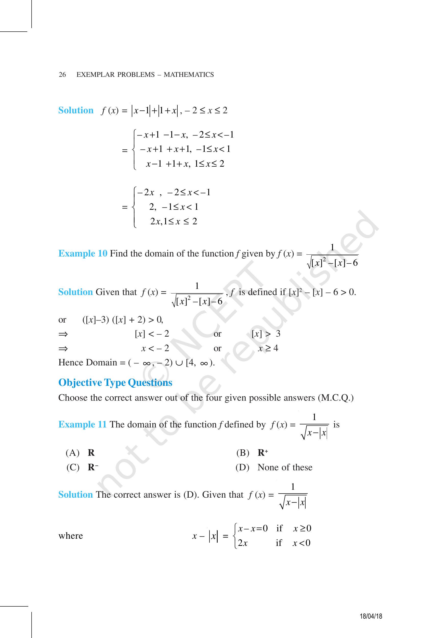 ** ~~ ** उदाहरण 8 ** ** निम्नलिखित फ़ंक्शनों द्वारा लिप्त फ़ंक्शन की सीमा ढूंढें (i) $ \ frac {| x-4 |} {x-4} $ (ii) $ \ sqrt {16-x ^ {2}} $