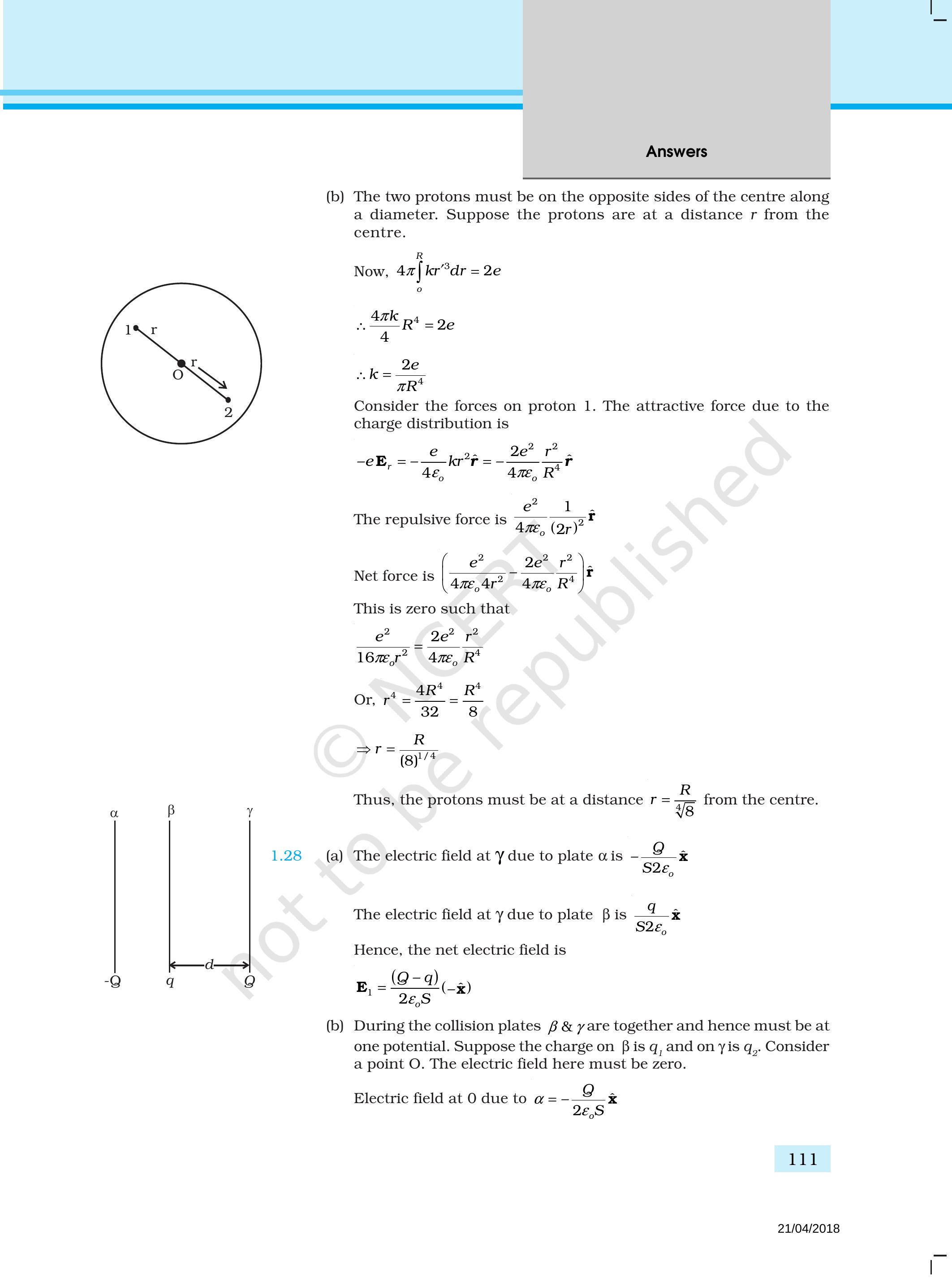 ~~ 1.7 एक गोल-चंद्रमा सक्रिय रूप से चार्जित है। केंद्र से दूरी पर एक बिन्दु पर विद्युत क्षेत्र होता है