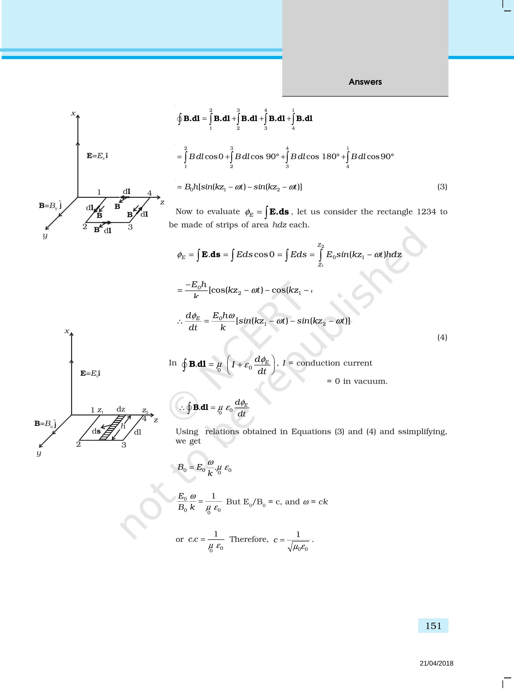 $ \begin {aligned} E_0 h & {[\sin (k z_2-\omega t) - \sin (k z_1-\omega t)]=\frac{B_o h}{k} \omega[\sin (k z_2-\omega t)-\sin (k z_1-\omega t)] } \ E_0 & =B_0 \frac{\omega}{k} \ \frac{E_0}{B_0} & =c \end {aligned} $