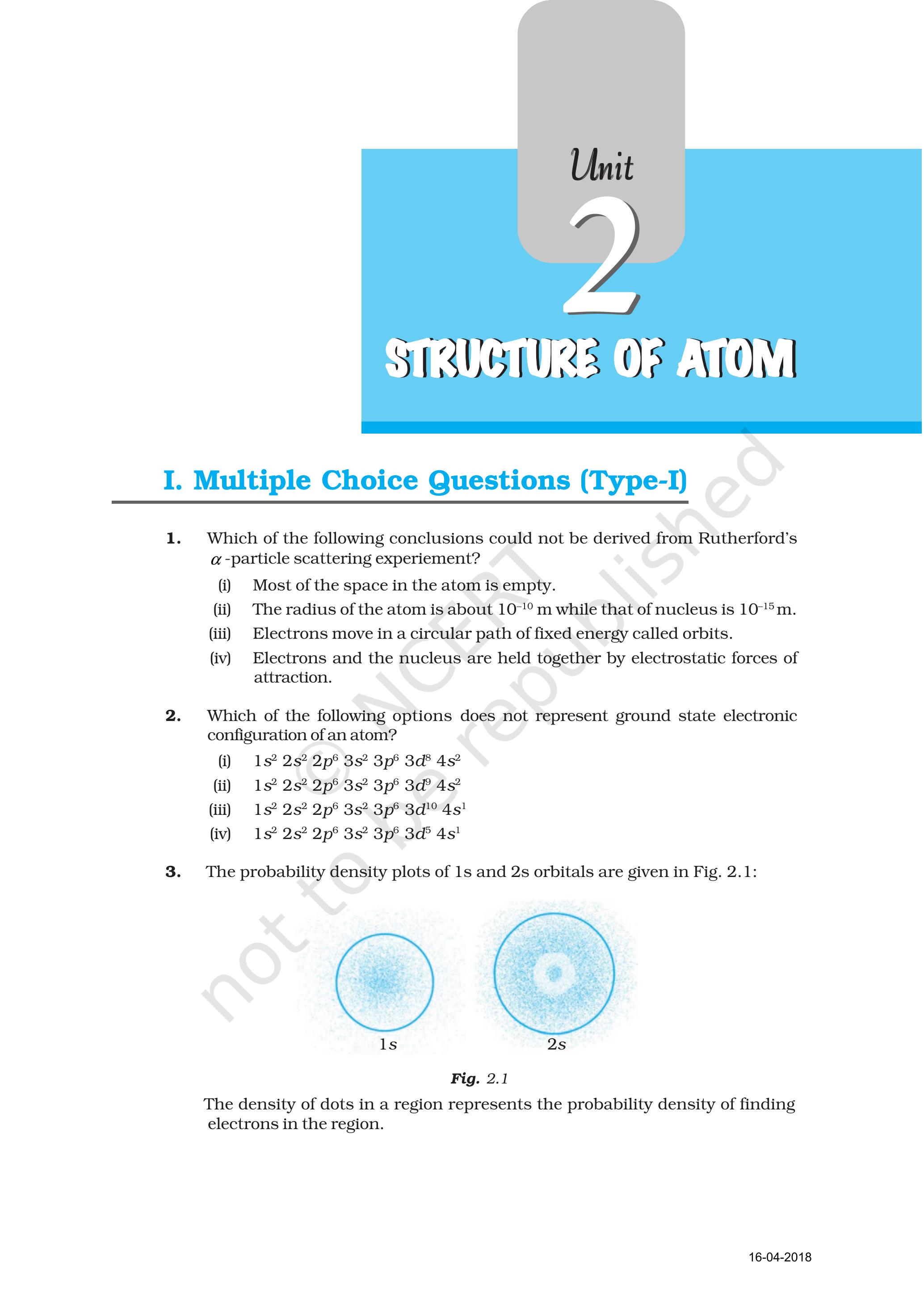 ~~ 1. निम्नलिखित में से कौन सा निष्कर्ष Rutherford के $\alpha$-कण प्रक्षेपण प्रयोग से प्राप्त नहीं किया जा सकता है?
