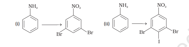 (i) नाईट्रोबेंजीन $\longrightarrow$ ऐसीटानिलाइड