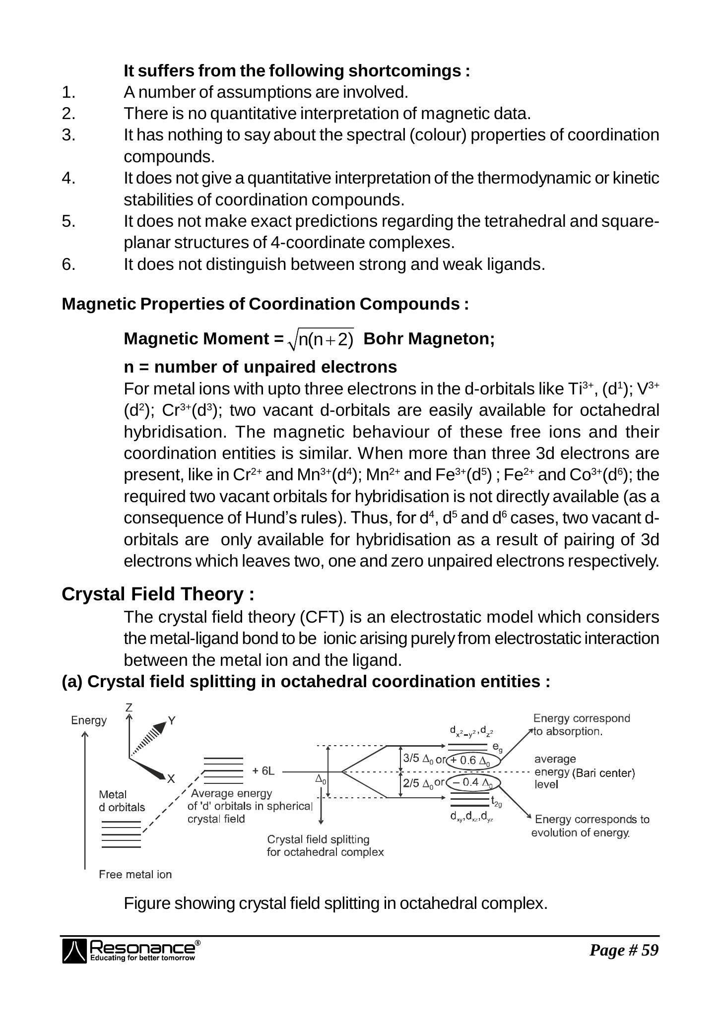 (1) It considers only the metal ion d-orbitals and gives no consideration at all to other metal orbitals (such as $s, p_{x}, p_{y}$ and $p_{z}$ orbitals).