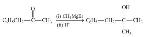 $ C_6 H_5-CH_2 COCH_3 \xrightarrow[\text { (ii) } H^{+}]{\text {(i) } CH_3 MgBr \text { (excess) }} $