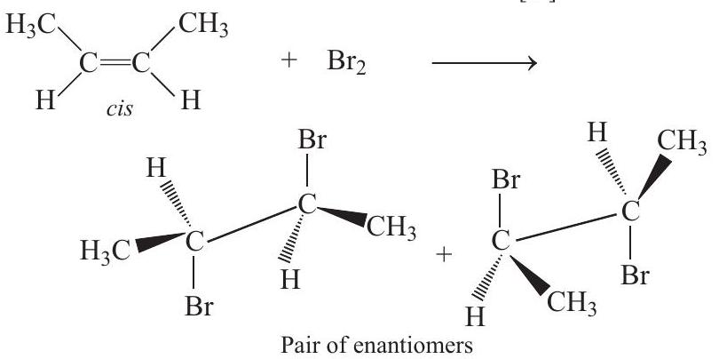 69. Write down the structure of the stereoisomers formed when cis-$2$-butene is reacted with bromine.