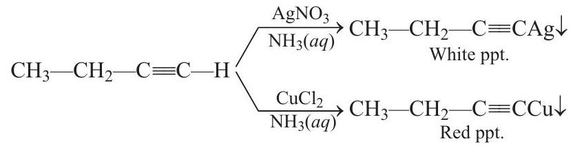 77. Give the chemical test to distinguish between $2$-butyne and $1$-butyne.