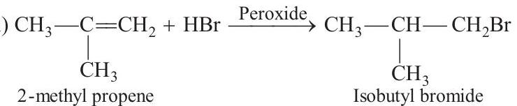 (i) $2$-methyl propene can be converted into isobutyl bromide by hydrogen bromide.