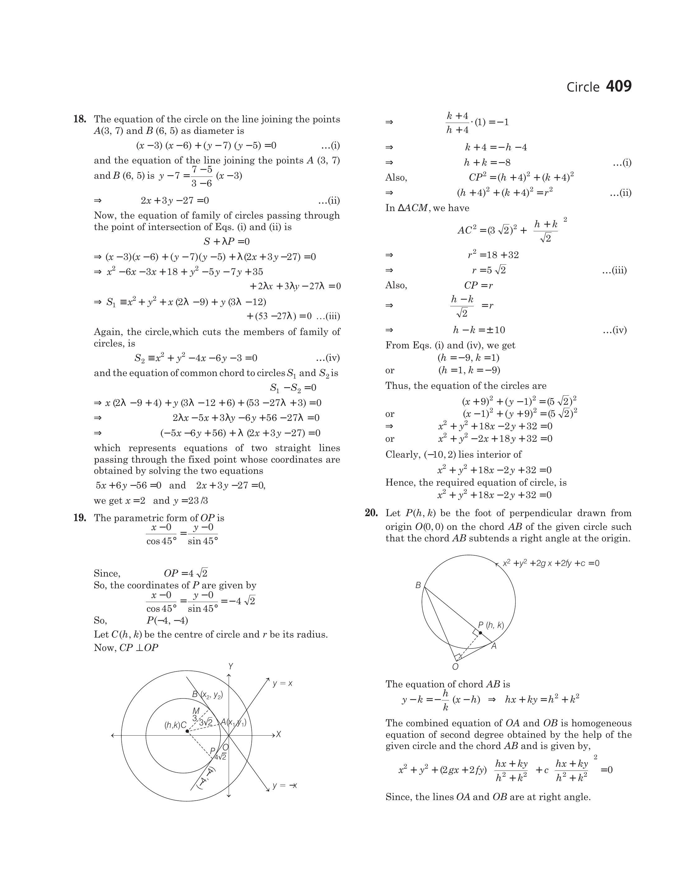 - Let $P(h, k)$ be the foot of perpendicular drawn from origin $O(0,0)$ on the chord $A B$ of the given circle such that the chord $A B$ subtends a right angle at the origin.