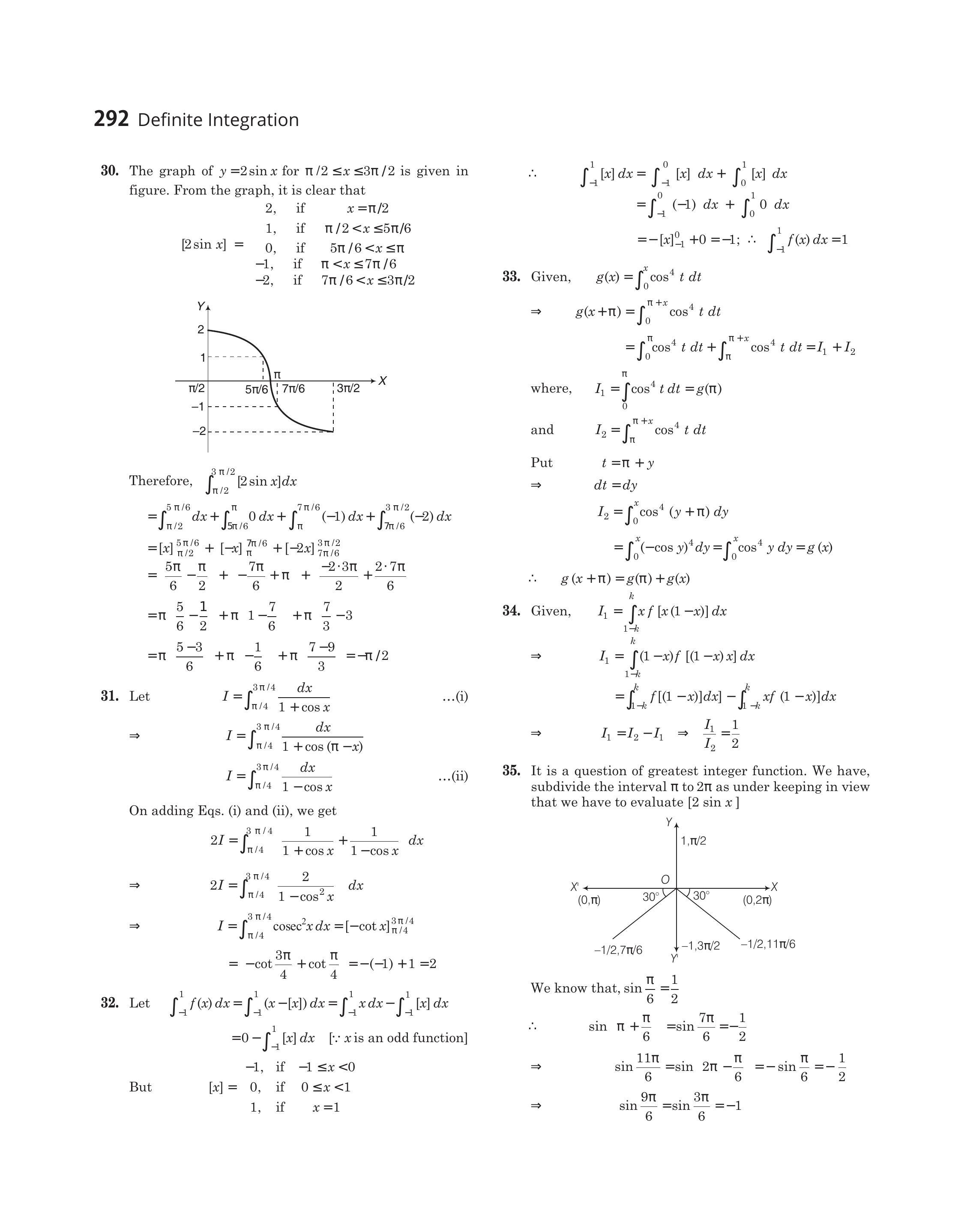 - If for a real number $y,[y]$ is the greatest integer less than or equal to $y$, then the value of the integral $\int _{\pi / 2}^{3 \pi / 2}[2 \sin x] d x$ is
