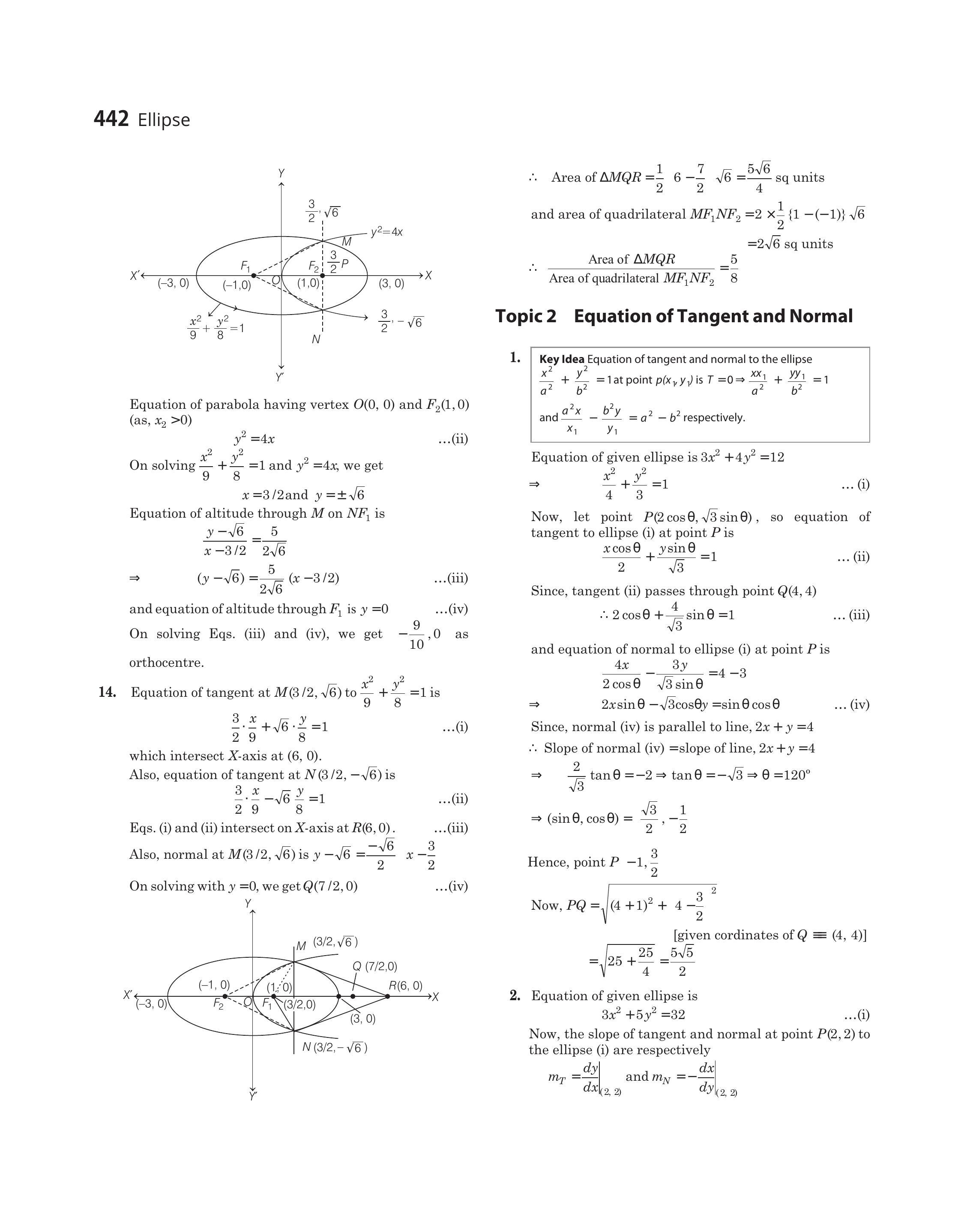 - If the tangents to the ellipse at $M$ and $N$ meet at $R$ and the normal to the parabola at $M$ meets the $X$-axis at $Q$, then the ratio of area of $\triangle M Q R$ to area of the quadrilateral $M F _1 N F _2$ is