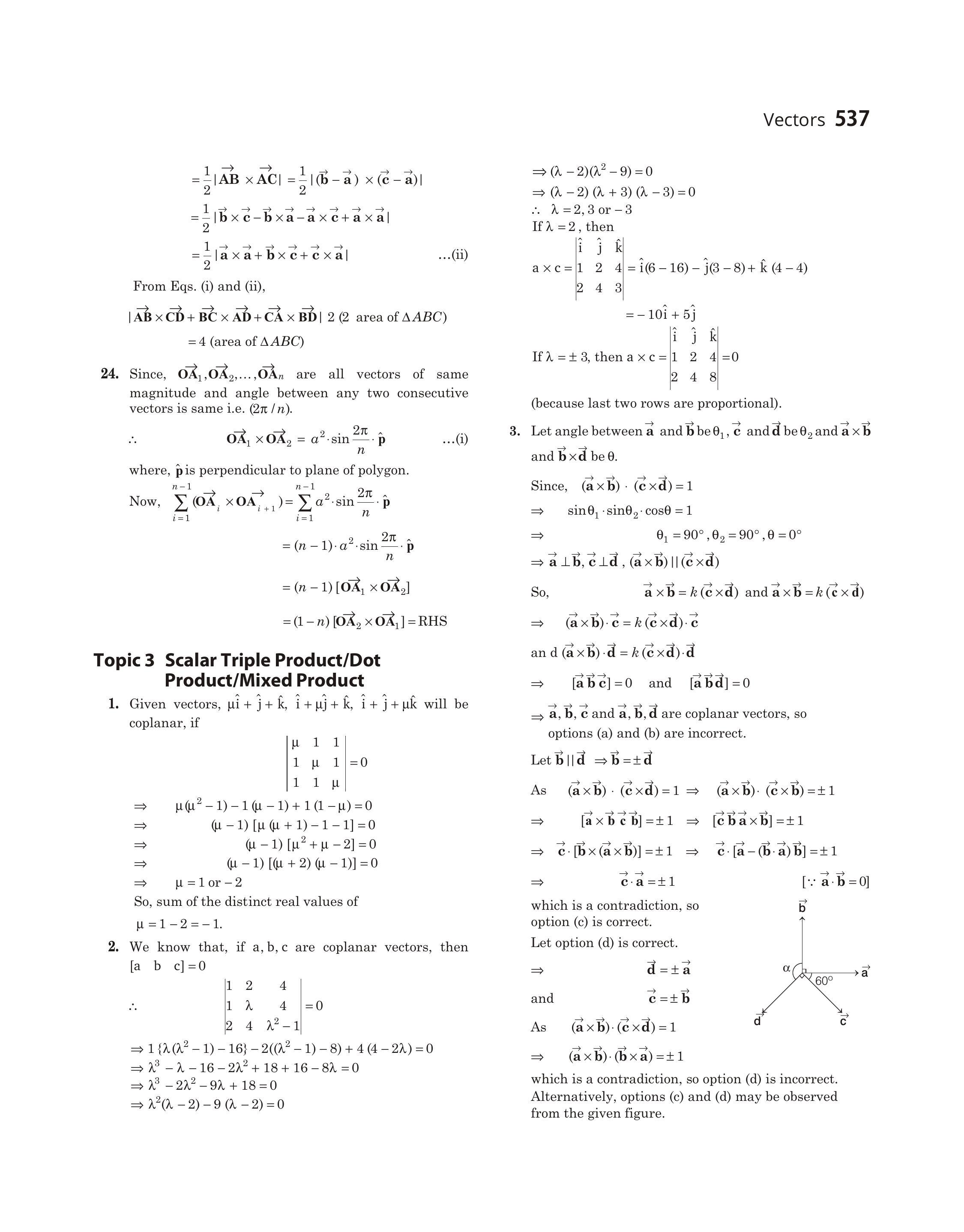 - Let angle between $\overrightarrow{\mathbf{a}}$ and $\overrightarrow{\mathbf{b}}$ be $\theta _1, \overrightarrow{\mathbf{c}}$ and $\overrightarrow{\mathbf{d}}$ be $\theta _2$ and $\overrightarrow{\mathbf{a}} \times \overrightarrow{\mathbf{b}}$ and $\overrightarrow{\mathbf{b}} \times \overrightarrow{\mathbf{d}}$ be $\theta$.