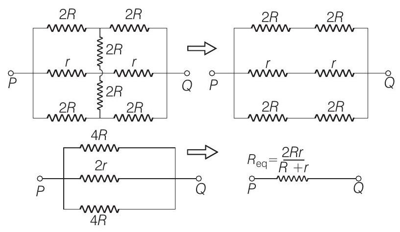 - The effective resistance between points $P$ and $Q$ of the electrical circuit shown in the figure is