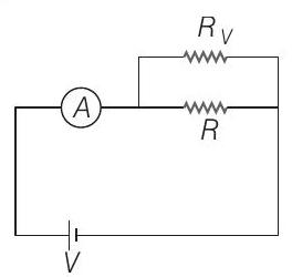 $\text { Given, } \quad R =30 \Omega \Rightarrow \frac{30 R _V}{30+R _V}=28.5 $