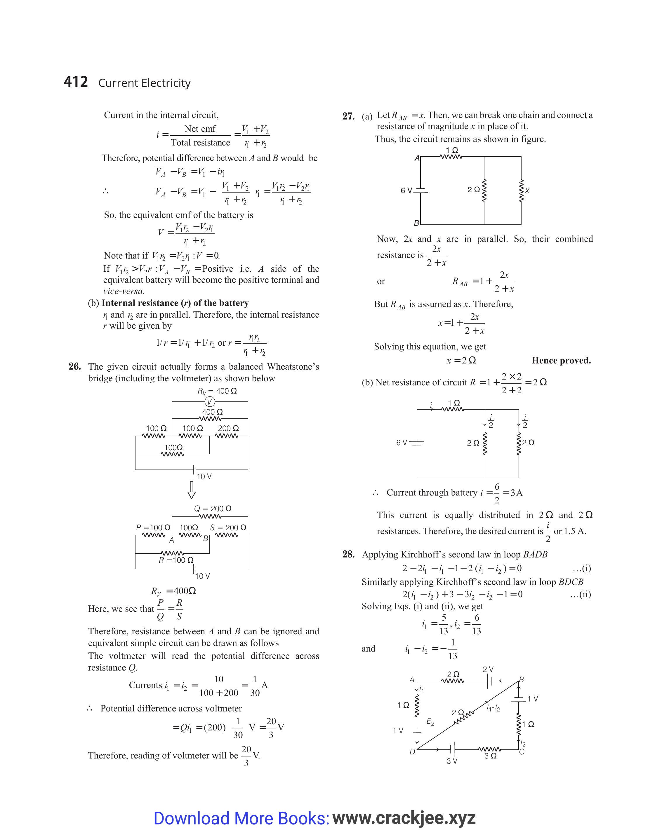 Similarly applying Kirchhoff’s second law in loop $B D C B$