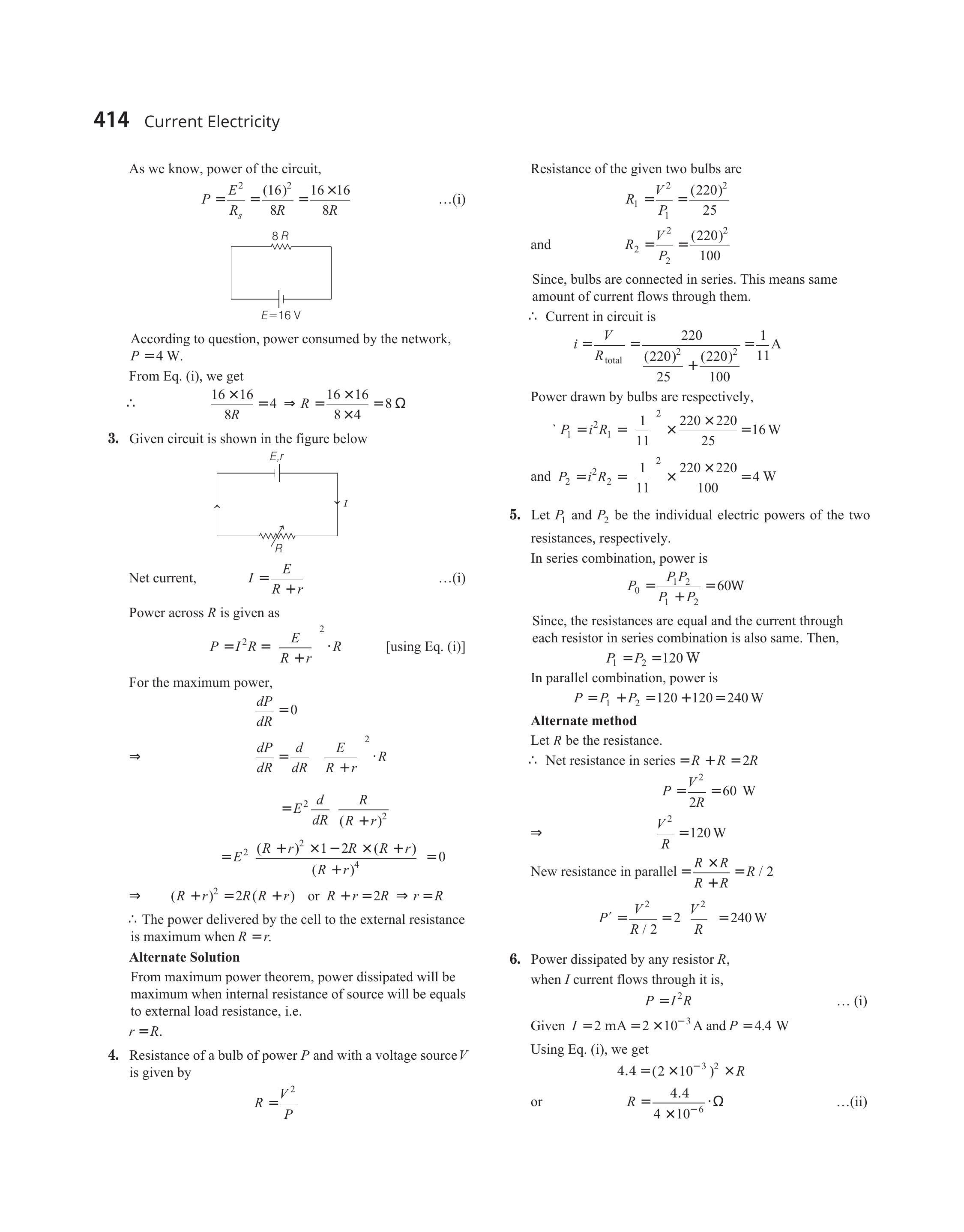 $ P=I^{2} R=(\frac{E}{R+r})^{2} \cdot R \quad \text { [using Eq. (i ) }] $