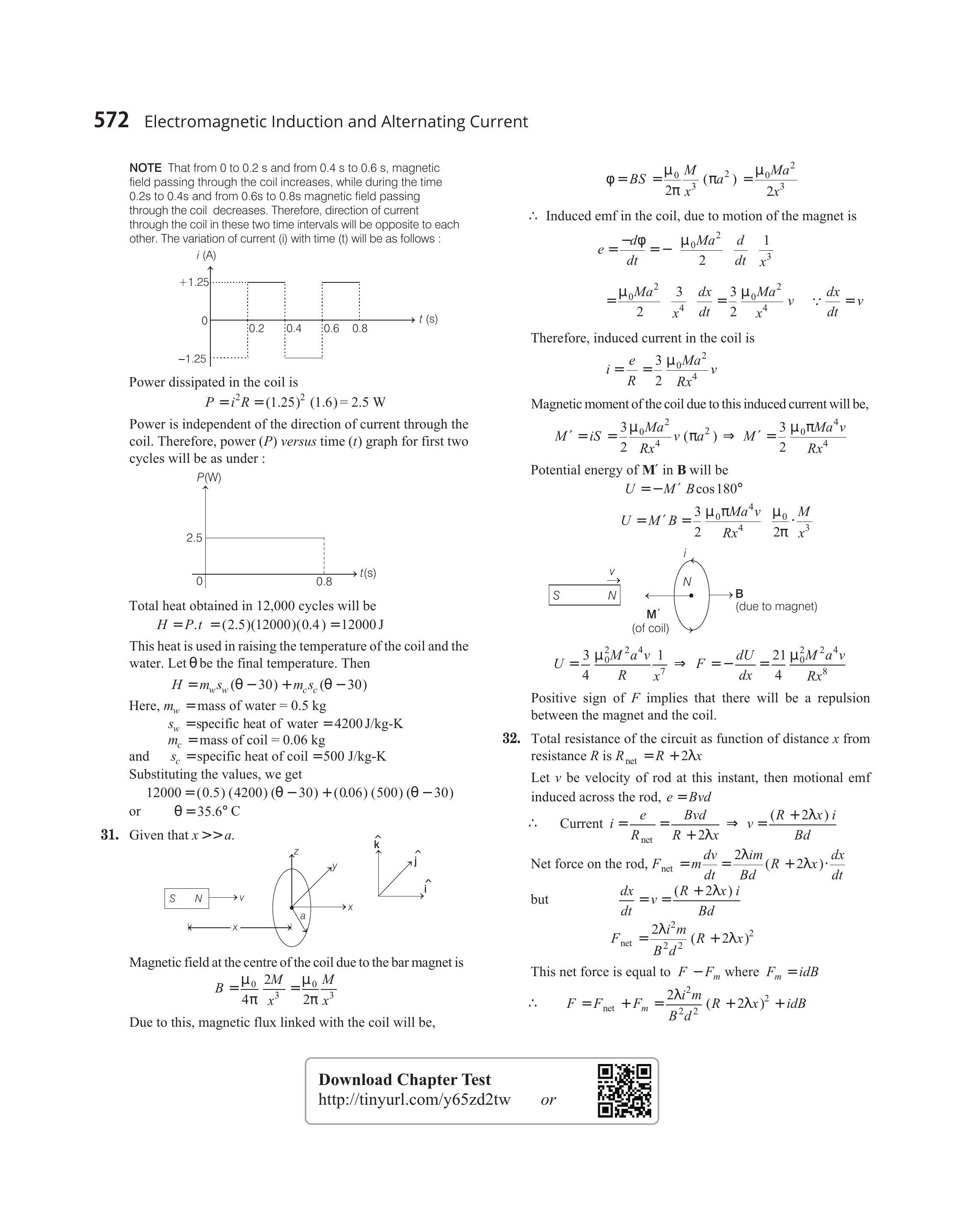 $$ \begin{aligned} e & =\frac{-d \varphi}{d t}=-\frac{\mu _0 M a^{2}}{2} \frac{d}{d t} \frac{1}{x^{3}} \\ & =\frac{\mu _0 M a^{2}}{2} \frac{3}{x^{4}} \frac{d x}{d t}=\frac{3}{2} \frac{\mu _0 M a^{2}}{x^{4}} v \quad \because \frac{d x}{d t}=v \end{aligned} $$