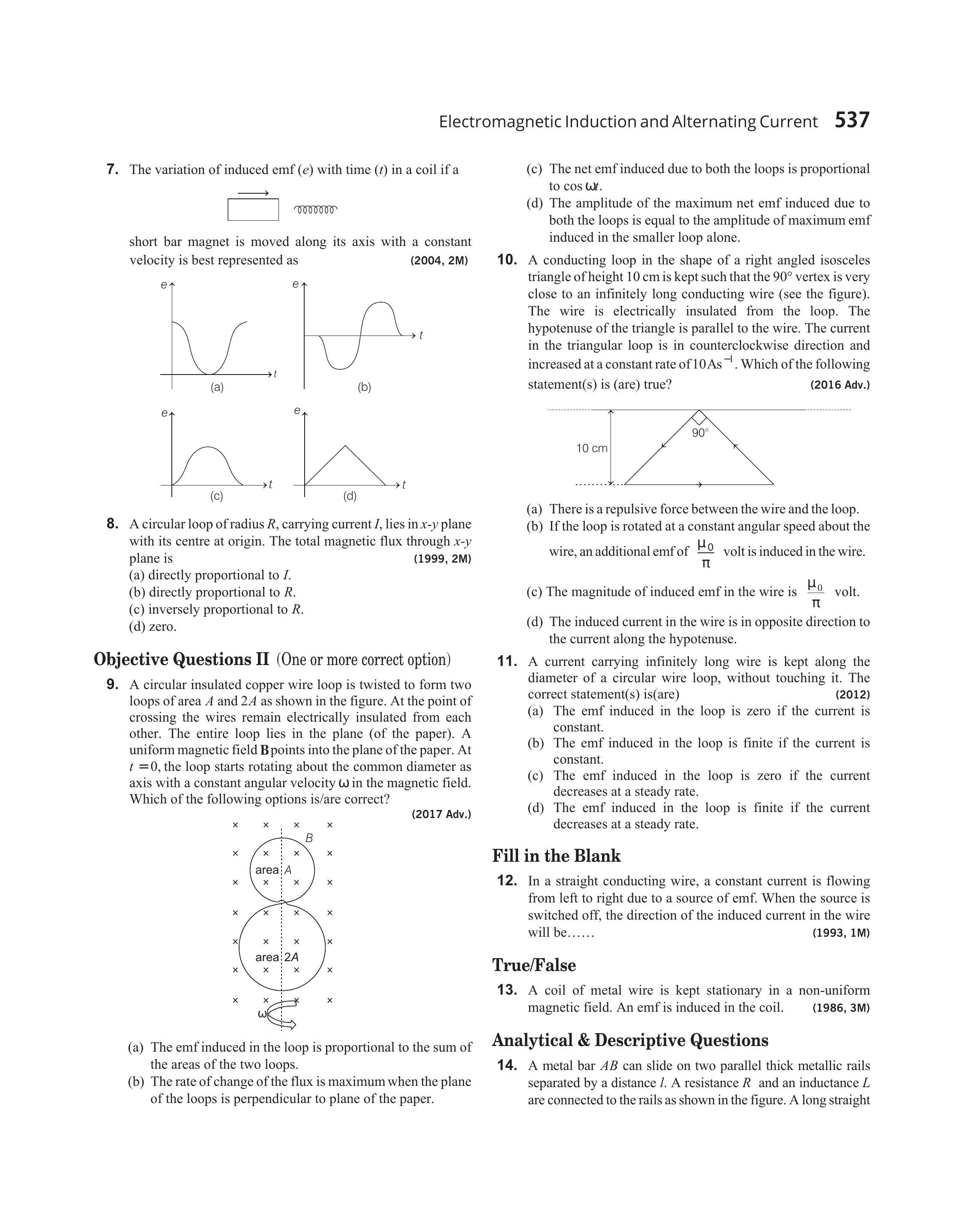 Electromagnetic Induction And Alternating Current Ques 22