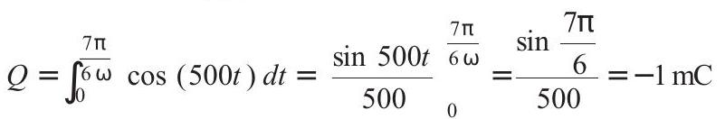 $$ \begin{aligned} & \Rightarrow \quad Q=\int I d t=\int\left(I _0 \cos \omega t\right) d t \\ & \therefore \quad Q _{\max }=\frac{I _0}{\omega}=\frac{1}{500}=2 \times 10^{-3} C \end{aligned} $$