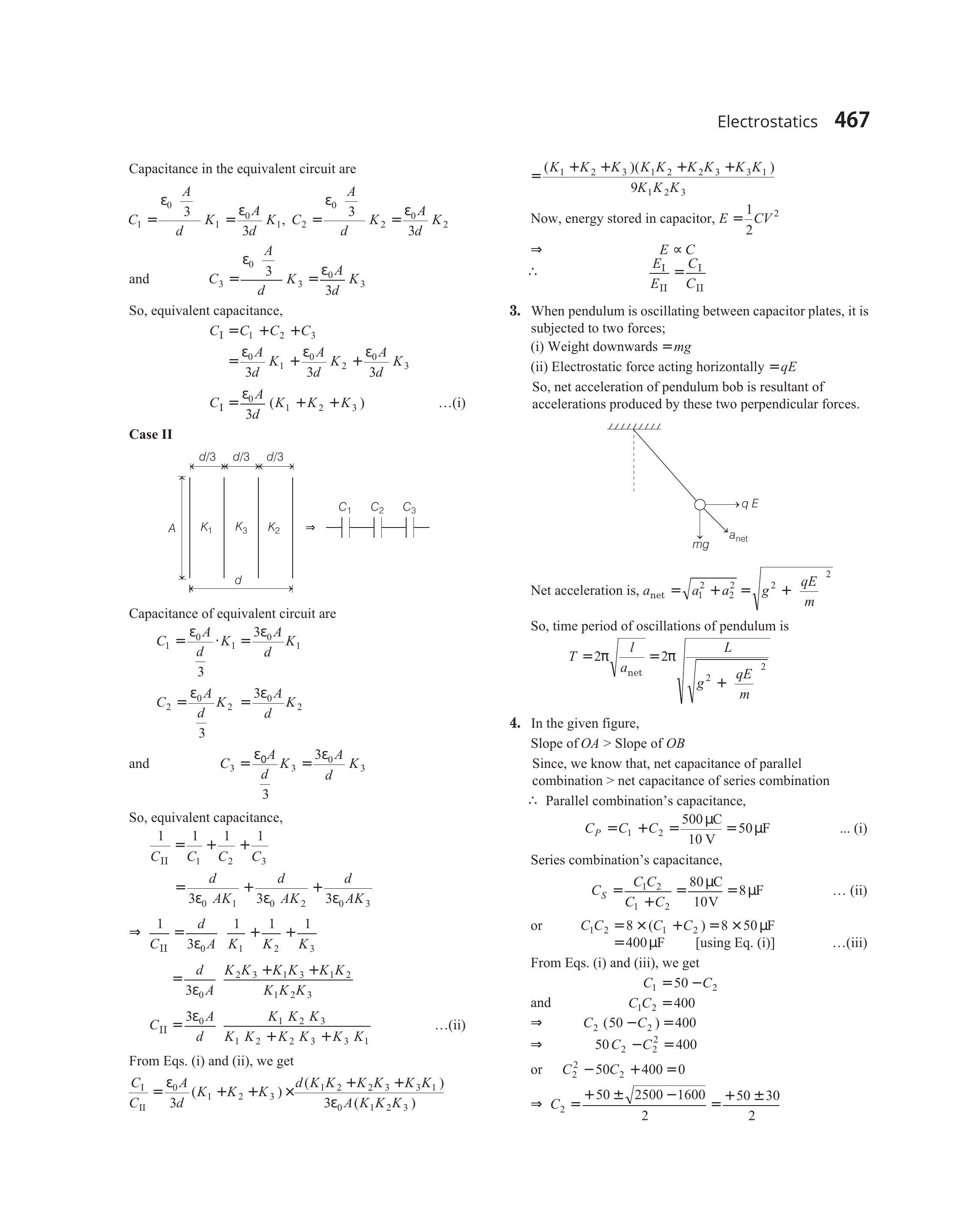 - When pendulum is oscillating between capacitor plates, it is subjected to two forces;