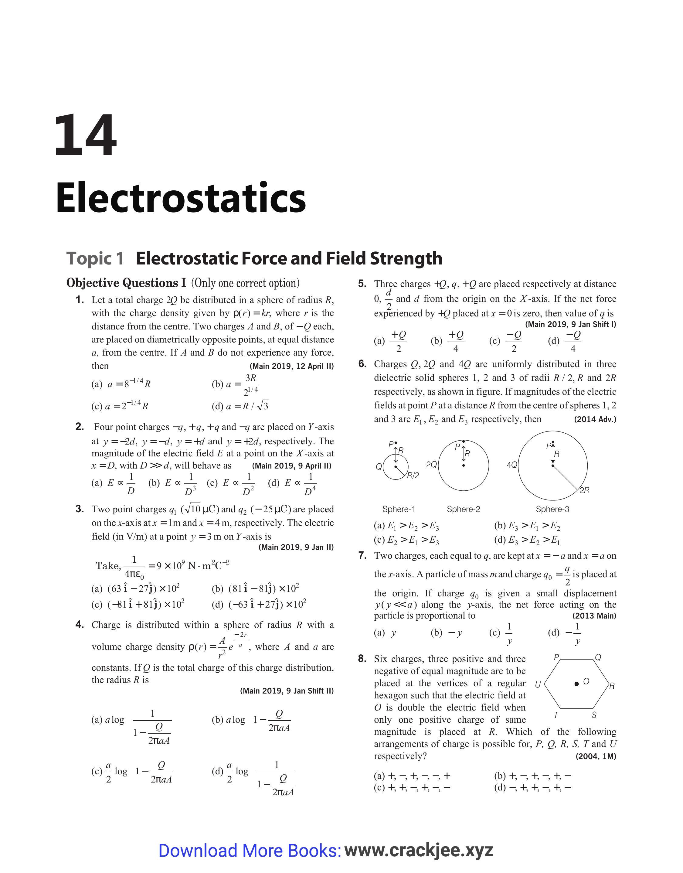 $$ \begin{array}{ll} \Rightarrow & \quad \mathrm{m} _ 2=\frac{k(2 Q)}{R^{2}} \\ \Rightarrow & E _ 2=\frac{2 k Q}{R^{2}} \Rightarrow E _ 3=\frac{k(4 Q)}{(2 R)^{3}} \\ \Rightarrow \quad E _ 3=\frac{k Q}{2 R^{2}} \end{array} $$
