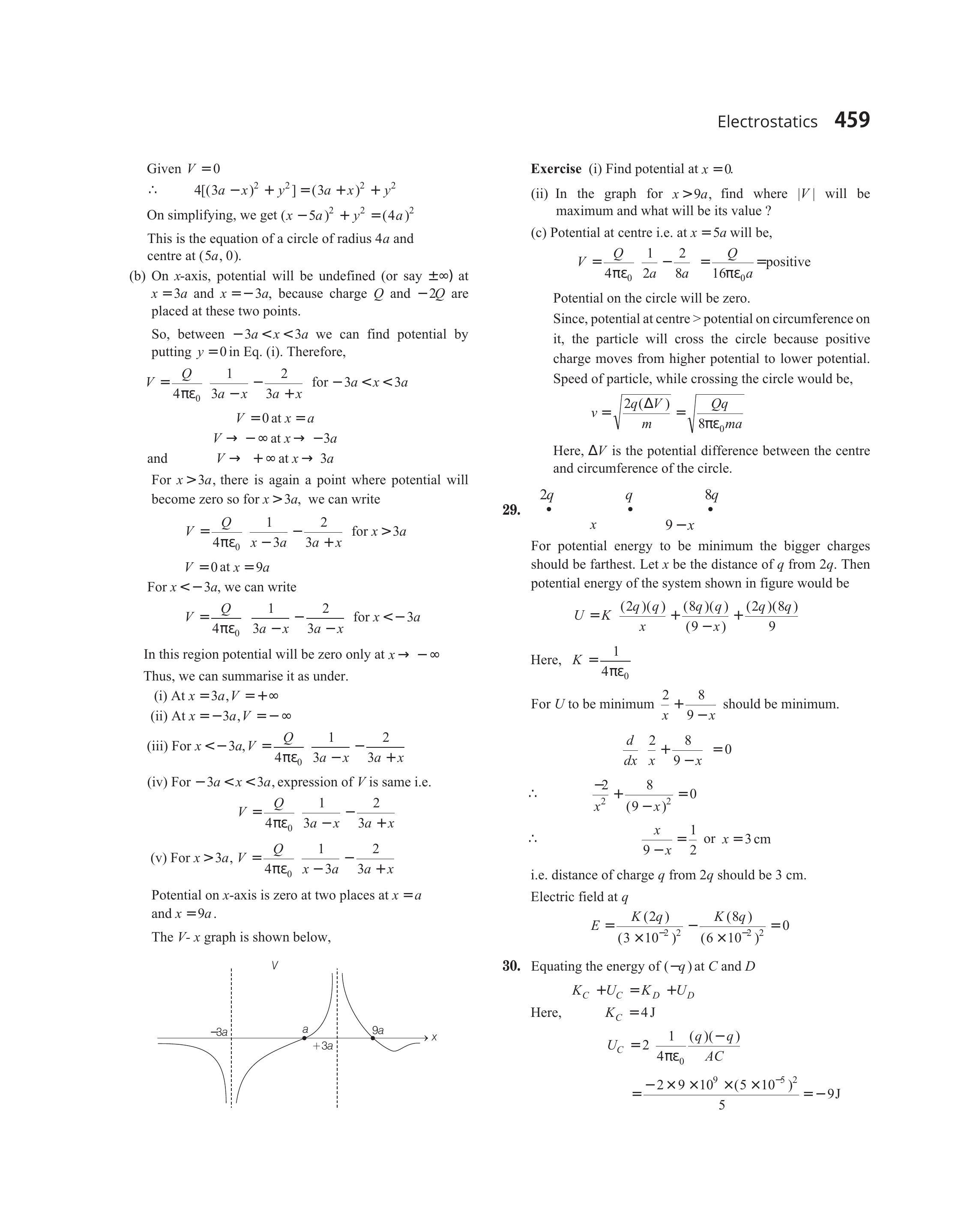 $$ \begin{aligned} & V=\frac{Q}{4 \pi \varepsilon_{0}} \frac{1}{x-3 a}-\frac{2}{3 a+x} \text { for } x>3 a \\ & V=0 \text { at } x=9 a \end{aligned} $$