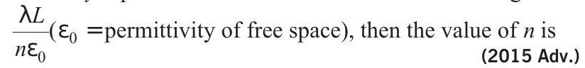 $ \begin{aligned} & =\frac{60^{\circ}}{360^{\circ}}(\varphi) \\ & =\frac{\lambda L}{6 \varepsilon_{0}} \\ \therefore \quad n & =6 \end{aligned} $