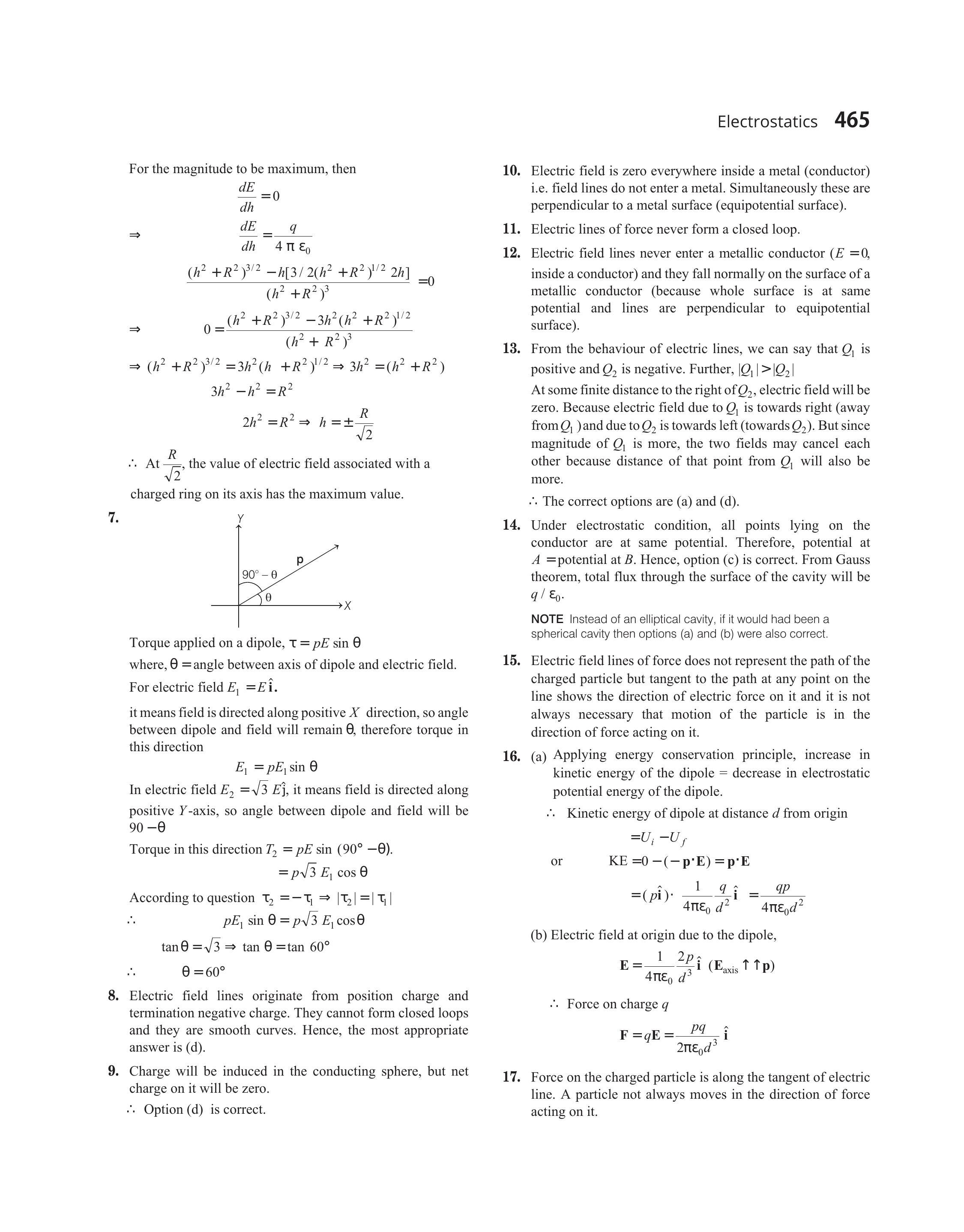$ \begin{aligned} & \therefore \quad p E_{1} \sin \theta=p \sqrt{3} E_{1} \cos \theta \\ & \tan \theta=\sqrt{3} \Rightarrow \tan \theta=\tan 60^{\circ} \\ & \therefore \quad \theta=60^{\circ} \end{aligned} $
